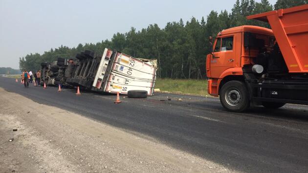 Ящики с яблоками усыпали дорогу в Омской области из-за автомобильной аварии. Сегодня, 23 июля, на трассе Омск - Черлак перевернулся большегруз. Сообщение о дорожно-транспортном происшествии в полицию Черлакского района поступило в 11:00. Звонивший сообщил, что в аварии пострадали люди. Прибывшими сотрудниками полиции предварительно установлено, что водитель, мужчина 1951 года рождения, управляя грузовым автомобилем Volvo, двигаясь по автодороге Омск - Черлак в направлении города Омска, в районе 100 километра не справился с управлением и допустил опрокидывание автомобиля, - сообщает пресс-служба УГИБДД России по Омской области. Пассажира фуры, мужчину 1988 года рождения, прибывшие медики бригады скорой помощи доставили в медицинское учреждение. Был ли водитель большегруза пьян, в ведомстве не сообщили. В фуре перевозили партию яблок, которые при опрокидывании усеяли обочину трассы. Сейчас полицейские проводят проверку, чтобы выяснить все причины произошедшей аварии. Стоит отметить, что это не первый случай, когда автотрассу усыпало плодами. В 2015 году за одну летнюю неделю на дороге переворачивались большегрузы с арбузами - один на трассе Омской области, второй - на дороге соседней Новосибирской области. Из-за этих случаев кюветы дорог были наполнены тоннами спелых арбузов, а водителям рекомендовали организовать торговлю прямо на трассе. Фото: Госавтоинспекции Омской области