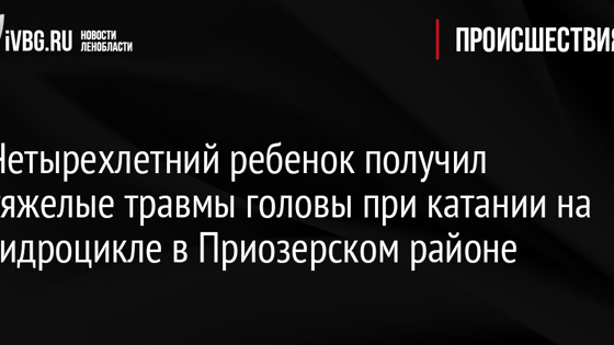 Четырехлетний ребенок получил тяжелые травмы головы при катании на гидроцикле в Приозерском районе