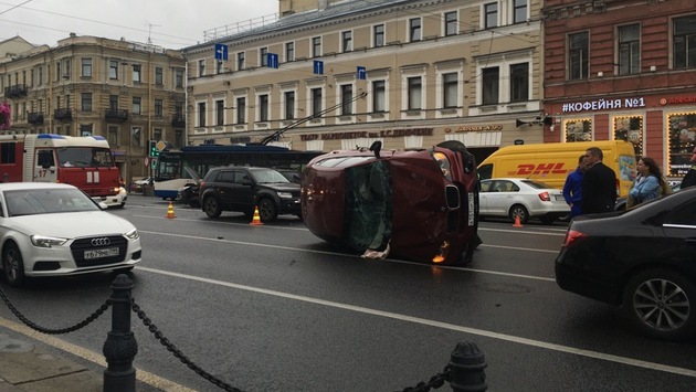 С.-ПЕТЕРБУРГ, 31 июл - РИА Новости. Автомобиль BMW выехал на полосу встречного движения, столкнулся с четырьмя автомобилями и перевернулся на Невском проспекте в Петербурге, сообщает управление ГИБДД по Санкт-Петербургу и Ленинградской области. По предварительной информации, ДТП произошло в среду около 8.10 мск. "Водитель, управляя автомобилем BMW, выехал на полосу встречного движения и совершил столкновение с транспортными средствами: Ford Kuga, Mercedes, Citroen, Opel Corsa. После чего BMW совершило опрокидывание. В результате ДТП водитель автомобиля Ford Kuga в удовлетворительном состоянии госпитализирован", - говорится в сообщении. По факту ДТП проводится проверка.