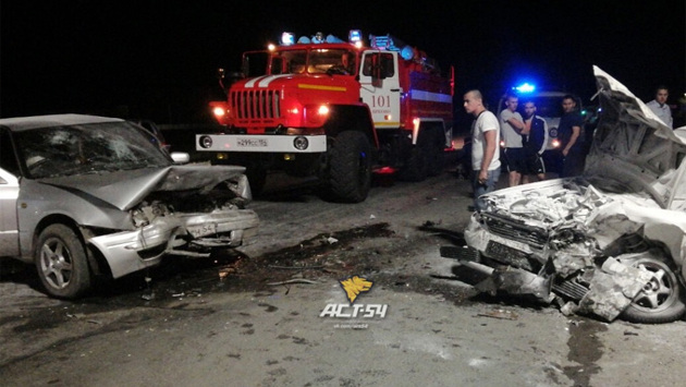 В ночь на 4 августа на Ордынской трассе столкнулись седаны Nissan Sunny и Toyota Vista. От лобового удара оба автомобиля оказались буквально уничтожены, сообщает «АСТ-54». Нетрезвый мужчина, сидевший за рулем Toyota, разбил голову, однако его это не сильно беспокоило. Он находился в приподнятом настроении и шутил. Еще пять человек пострадали. На месте работала полиция, пожарные и скорая помощь. Комментаторов предсказуемо возмутило поведение виновника ДТП. «После удара головой будет еще больше шутить», – язвительно предположил один из них. Читайте также – «Мертвецки пьяный водитель после ДТП подрался с прохожим».