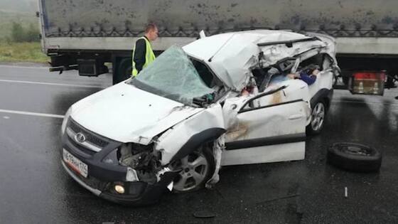 Мама, папа и их четырехлетний сын погибли в столкновении с фурой в Нижегородской области, еще три человека, в том числе шестилетняя дочь скончавшейся пары, попали в больницу. Страшное ДТП попало в объектив регистратора. Авария произошла около восьми часов утра 11 августа в Лысковском районе, а ее виновником стал водитель большегруза. Мужчина сильно разогнался на спуске, а перед входом в поворот начал тормозить, но на мокрой дороге полуприцеп повело влево, так что он вылетел на встречную полосу. Владелец "Лады-Ларгус" в последний момент попытался уйти в сторону, но перестроиться ему помешал попутный грузовик. Удар пришелся в левую часть легковушки, в салоне которой находились шесть человек — семья из Челябинска. Полученные травмы оказались смертельными для 37-летнего водителя, его супруги и их четырехлетнего сына. В больницу с многочисленными травмами доставили их шестилетнюю дочь и двух женщин 57 и 60 лет от роду. Управлявшего фурой 32-летнего мужчину взяли под стражу. Ранее его уже штрафовали за аварию с несколькими пострадавшими.