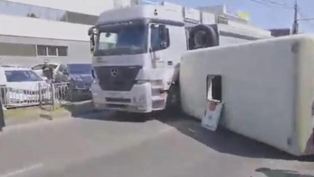В Краснодаре после массового ДТП перевернулась маршрутка с пассажирами