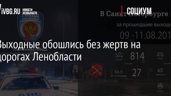 За прошедшие выходные, с 9 по 11 августа, в Ленинградской области произошло 225 ДТП, сообщает управление ГИБДД по Петербургу и Ленобласти. В общей сложности в северной столице и регионе пострадали 65 человек. Отмечено всего несколько крупных серьезных аварий. Но впервые с начала весны погибших нет. С 9 по 11 августа в регионе было зафиксировано 225 аварий, в том числе 25 – с пострадавшими. Травмы получили 31 человека, из них четверо – дети. В Петербурге зафиксировано 814 ДТП, 34 - получили травмы, в том числе три ребенка. Ранее мы сообщали, что с утра на дорогах Ленобласти уже произошло три ДТП с участием пассажирского транспорта.