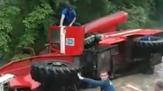 «Урал» спасателей перевернулся в Приморье на залитой дороге