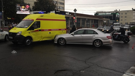 В центре Анапы «Мерседес» врезался в «скорую» Сегодня, 18 августа, днем, на перекрестке улиц Крымской и Красноармейской в Анапе произошло ДТП. Серебристый «Мерседес» столкнулся с машиной скорой помощи, которая, как утверждают свидетели происшествия в соцсетях, двигалась с проблесковыми маячками и включенной сиреной. По информации тех же очевидцев, к счастью, никто не пострадал. Подробности инцидента и комментарии правоохранителей – немного позже. Видео — @pva_anapa Напоминаем, что недавно в Анапе мотоцикл въехал в трактор.