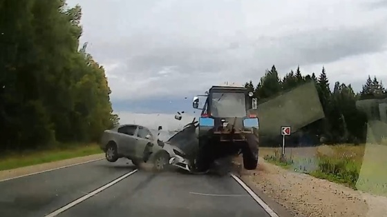 В Сети опубликованы впечатляющие кадры с регистратора очевидца, запечатлевшего момент дорожно-транспортного происшествия, произошедшего в минувшую пятницу, 16 августа, в Александровском районе Владимирской области. На записи можно наблюдать, как водитель автомобиля Skoda, без видимых на то причин, выехал на полосу встречного движения, и врезался в трактор. После удара легковушку отбросило в кювет, а протараненное ею транспортное средство не устояло на колесах и завалилось на бок. Как сообщали СМИ, в результате инцидента пострадал мужчина, находившийся за рулем Skoda. Он был доставлен в больницу.