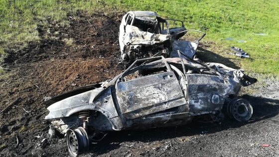 По меньшей мере четыре человека пали жертвами столкновения четырех автомобилей в Тульской области, сообщает Myslo.ru. Последствия страшной аварии сняли на видео. ДТП произошло около трех часов дня 19 августа в Щекинском районе. На 202-м километре федеральной трассы "Крым" столкнулись следовавшие в одном направлении Kia, ВАЗ-2114 и Lexus, которые после удара оказались на "встречке" и протаранили грузовой Volkswagen Crafter. Столкновение было такой силы, что легковушки загорелись, пару из них огонь уничтожил полностью. Первоначально сообщалось о двоих погибших — водителях Kia и "четырнадцатой", однако сегодня ночью в больнице скончалась пожилая пассажирка Lexus. Кроме того, в салоне ВАЗа следователи обнаружили обгоревшие останки еще одного или двух человек, так что число жертв аварии уже достигло четырех (если не пяти). В больнице остается владелец Lexus, его жизни ничего не угрожает.