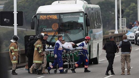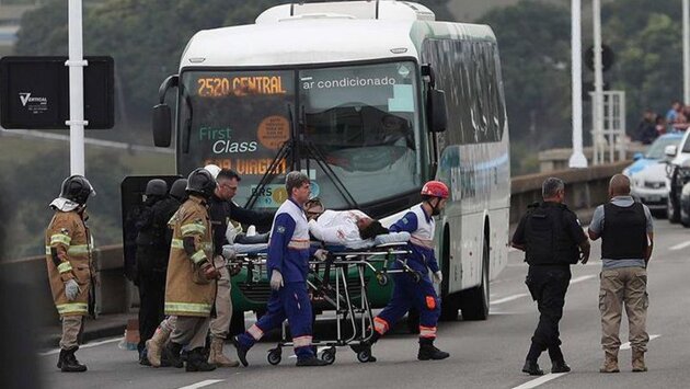Транспортное средство блокировали на мосту, переговоры привели к освобождению шестерых пассажиров, но в салоне остается еще 31 человек. По предварительным данным, мужчина около 05:30 утра сел на станции Жардим-де-Алькантара, а по дороге потребовал всех оставаться на местах, пригрозив в противном случае спалить автобус. Полицейские перегородили служебными автомобилями 13-километровый мост Рио-Нитерой, после трехчасовых переговоров они договорились об освобождении четырех женщин и двоих мужчин. В салоне, по предварительным данным, остается еще 31 пассажир. По предварительной информации, нападавший является офицером военной полиции, у него при себе канистра с бензином и, возможно, оружие.