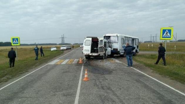 Пассажирская «ГАЗель» на полном ходу протаранила автобус «ПАЗ» на 52-м километре трассы Омск-Калачинск. Травмы различной степени тяжести получили восемь человек. Как сообщил портал NGS55.ru со ссылкой на отдел пропаганды БДД областной Госавтоинспекции, в момент столкновения в обоих автомобилях находились 15 человек. «В момент ДТП в салоне автобуса „ПАЗ“ находились восемь пассажиров, в микроавтобусе „Газель“ — семь пассажиров. В результате ДТП водитель и семь пассажиров автомобиля „Газель“ доставлены в медицинское учреждение», — приводит портал текст сообщения ведомства. «ГАЗель» ехала из Омска в Калачинск, а «ПАЗ» двигался в сторону Оконешниково. Точная причина происшествия пока выясняется. На месте аварии работают сотрудники дорожной полиции. Специалисты изучают все обстоятельства случившегося.