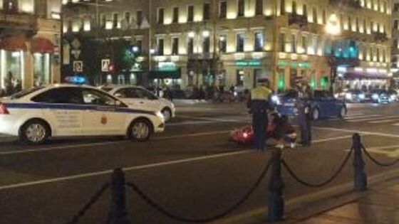 На Невском в Петербурге экипаж ДПС сбил скутериста