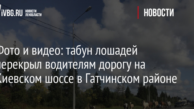 Фото и видео: табун лошадей перекрыл водителям дорогу на Киевском шоссе в Гатчинском районе