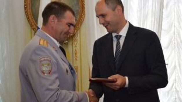 27 августа врио губернатора Оренбуржья Денис Паслер вручил медали «За отличие в охране общественного порядка» полицейским Алексею Клейменову и Михаилу Камардину. В мае 2018 года сотрудники полиции Виталий Субботиным и Алексей Клейменовым преградили служебным автомобилем путь пьяному водителю, езда которого угрожала жизням пешеходов. До этого нарушить проигнорировал все требования сотрудников ДПС об остановке и продолжил ехать на большой скорости в сторону гуляющих с детьми граждан. Водитель был задержан, а правоохранители с травмами госпитализированы. Замначальника отдела участковых уполномоченных полиции и по делам несовершеннолетних отдела полиции №6 МУ МВД России «Оренбургское» Михаил Камардин в мае прошлого года получил ориентировку на мужчину, подозреваемого в совершении насильственных действий. Он обнаружил злоумышленника при обходе одного из СНТ, при задержании мужчина оказал сопротивление и ранил ножом стража порядка. Полицейскому пришлось применить табельное оружие. Подозреваемый был задержан после оказания первой медицинской помощи. Оба правоохранителя продолжают нести службу в рядах органов внутренних дел, сообщает пресс-служба УМВД региона. Напомним, ранее указом Президента Российской Федерации орденом «Мужества» за отвагу и самоотверженность, проявленные при исполнении служебного долга, был награжден Виталий Субботин.
