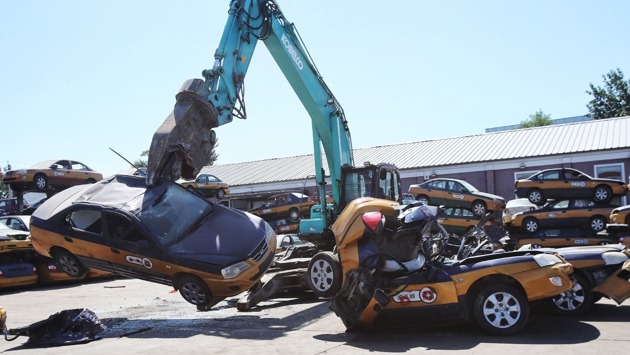 Почти две сотни нелегальных такси раздавили экскаватором