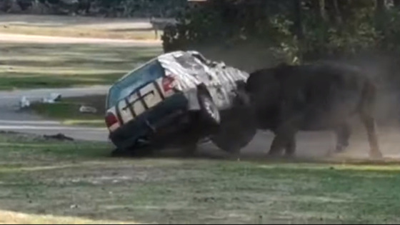 Выжить в ДТП с участием носорога сложно, но можно (невероятное видео)