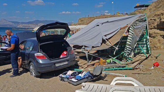 В Крыму автомобиль сорвался с обрыва и упал на пляжную палатку