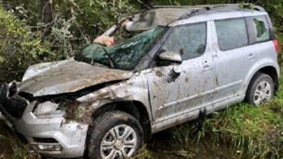 В Губахе внедорожник вылетел в кювет после столкновения с лосем
