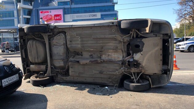 ВАЗ-2114 около 11 часов утра 3 сентября опрокинулся на бок и, по сообщениям очевидцев, проехал в таком положении около 50 метров по Казанскому шоссе. Нетривиальный способ передвижения произошел после столкновения с автомобилем Hyundai. Как сообщили ИА «В городе N» в пресс-службе УГИБДД по Нижегородской области, по предварительной информации, 19-летний водитель «Лады», стаж которого составляет около года, проехал на запрещающий сигнал светофора. К этому маневру не был готов водитель иномарки, от удара о которую отечественная легковушка и оказалась в таком положении. Примечательно, но управлявший «Ладой» молодой человек отделался легкими повреждениями. Обстоятельства ДТП устанавливаются. Напомним, что неподалеку от этого места в этот же день произошла авария с участием рейсового автобуса и французской иномарки. Фото: vk.com/novgorod_52