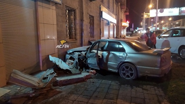 Nissan Skyline врезался в жилой дом на улице Большевистской