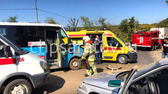 В результате ДТП пострадали четыре человека. Автомобиль ВАЗ-2112 протаранил рейсовый автобус № 251 на одном из участков дороги из поселка Юбилейный в Солнечный. По предварительным данным, виновником столкновения стал водитель легкового автомобиля, который в момент ДТП был пьян. Машина с тремя пассажирами под управлением нетрезвого автомобилиста протаранила автобус. В аварии пострадали водитель и три пассажира «двенадцатой. Сейчас пострадавшим оказывают первую помощь врачи «скорой» и Центра медицины катастроф. По словам врачей, участники столкновения получили травмы средней степени тяжести, сейчас принимается решение об их госпитализации. Кто стал виновником произошедшего, сейчас выясняют сотрудники ДПС. Однако, водитель «двенадцатой» говорит, что не он управлял автомобилем в момент аварии, но сказать, кто именно был за рулем, он не может. Сотрудники ДПС в данный момент выясняют все подробности происшествия.