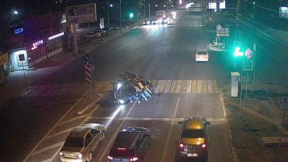 В Сети опубликованы видео не самой обычной аварии, произошедшей в минувшую субботу, 14 сентября, на пересечении улиц Хиросимы и Рокоссовского в Волгограде. Водитель кроссовера выехал из двора, но так и не сумел сориентироваться в пространстве – через несколько секунд машина наехала на островок безопасности между полосами движения, и перевернулась. Свидетели инцидента попытались поставить транспортное средство обратно на четыре колеса, однако не преуспели в этом. Люди, находившиеся в салоне авто, завалившегося на бок, эвакуировались при помощи очевидцев. По предварительным данным, никто из них серьезно не пострадал.