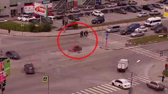 Едва не снес толпу пешеходов летевший после ДТП автомобиль