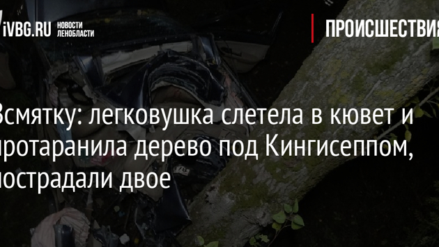 Всмятку: легковушка слетела в кювет и протаранила дерево под Кингисеппом, пострадали двое