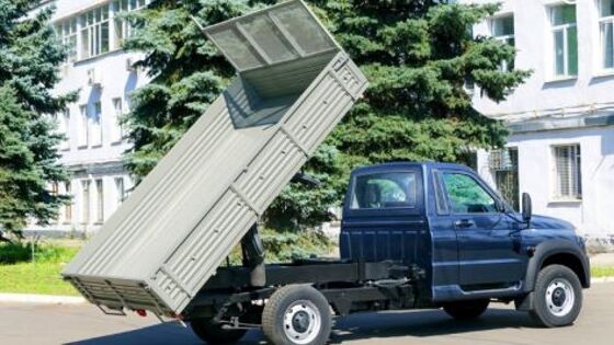 Конструкторы Ульяновского автомобильного завода разработали новый малотоннажный грузовик УАЗ «Профи», представленный в виде самосвала. Автомобиль разработан совместно с конструкторами компаниями ООО «Авто-Фургон». По заявленным производителями данным, грузоподъемность машины равна 1,1 тонны, при этом габариты грузовика равны 3090x2060x400 мм. Система самосвала работает быстро, поднимая и опуская кузов. В поднятом состояние кузов можно зафиксировать, используя механическую опору. Управлять подъемом кузова можно будет с помощью специализированного пульта, которые находится в кабине машины. Дата выхода грузовика в такой модификации пока не озвучена. Также производители не озвучивают цены на модель. Напомним, что стандартная модификация бортового грузовика оценивается от 825 тысяч рублей. Таким образом можно предположить, что стоимость самосвала будет выше. Сейчас конструкторы планируют провести необходимые тестовые испытания, которые дадут понять нуждается ли машина в дополнительных доработках или нет.