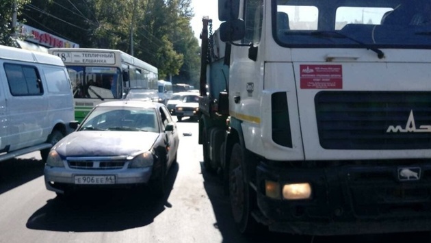 Водитель иномарки столкнулся с «КамАЗом». В результате ДТП виновника столкновения госпитализировали. Вчера, 3 октября, в Ленинском районе на улице Шехурдина произошла авария. Вечером, в 20 часов 40 минут напротив дома с номером 15 столкнулись «Datsun on-DO» и грузовик марки «КамАЗ» под управлением 56-летнего мужчины. По предварительным данным, столкновение допустил 44-летний водитель легковой машины. В ДТП пострадал его виновник — водитель автомобиля «Datsun on-DO», сообщили в Управлении ГИБДД по Саратовской области. В результате аварии мужчину госпитализировали в лечебное учреждение.