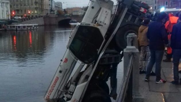 В Петербурге автокран упал в реку