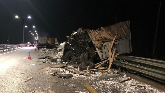 Сразу три большегруза стали участниками аварии на скоростной автомобильной дороге М-11 Москва – Санкт-Петербург. В Сети опубликована запись с камеры наблюдения, запечатлевшей момент ДТП, произошедшего вечером в минувшую среду, 2 октября. По данным пресс-службы регионального управления ГИБДД, 45-летний водитель грузовика КамАЗ из-за поломки остановился на трассе в Вышневолоцком районе Тверской области. Ему решил помочь 48-летний мужчина, управлявший другим КамАЗом. В тот момент, когда дальнобойщики, стоявшие на обочине, занимались устранением неисправности, в них влетела фура MAN, водитель которой оказался единственным пострадавшим в результате инцидента. Травмированный мужчина был доставлен в больницу в тяжелом состоянии.