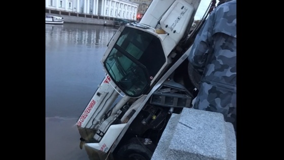 Камера наблюдения запечатлела момент незаурядного дорожно-транспортного происшествия, случившегося утром в субботу, 5 октября, на набережной реки Фонтанки в Санкт-Петербурге. На записи видно, как из переулка выехал автокран. Многотонная машина пересекла проезжую часть, пробила ограждение и рухнула в воду, застыв практически в вертикальном положении. Во время "заезда", завершившегося падением в реку, рядом с грузовиком бежал мужчина, пытавшийся попасть в кабину и остановить транспортное средство. Судя по всему, это был водитель автокрана, решивший исправить собственную оплошность – как сообщают местные СМИ, он вышел из машины поправить зеркало заднего вида, но забыл включить стояночный тормоз, после чего грузовик укатился. В результате инцидента никто не пострадал. Сотрудники МЧС занялись возвратом грузовика на сушу.