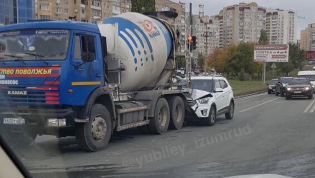 Сегодня, 5 октября, в саратовском поселке Юбилейный произошло ДТП с участием большегруза. Фото появилось в группе «Типичный Юбилейный» в ВКонтакте. Автор уточнил, что авария произошла рядом с ТЦ «Синий кит», который находится на улице Усть-Курдюмской. На снимке видно, что в бетономешалку сзади врезался внедорожник, похожий на Lada XRay. Подробности аварии, а также информация о пострадавших уточняется.