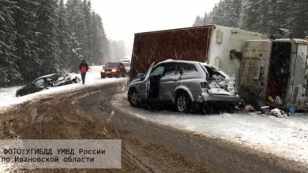 Накануне в Ивановской области произошла крупная авария - сообщают Аргументы и Факты – Иваново. Всё случилось в Фурмановском районе в 15:30. Как нам стало известно, КАМАЗ врезался в стоящие на проезжей части автомобили «Kia Rio», «SsangYong Kyron» и «Suzuki Grand Vitara». Судя по всему, мокрый снег осложнил водителю видимость на дороге. В результате массового столкновения 57-летняя пассажирка «Kia Rio» получила ушибы. Ее отвезли в больницу. К счастью, никто серьезных травм не получил. Вскоре после аварии мимо проезжали костромичи. И засняли на камеру страшную картину перевёрнутого КАМАЗа и разбросанных легковушек. Многие сошлись во мнении, что в такую погоду уже нельзя ездить на летней резине. Отметим, что в Костромской области тоже не обошлось без происшествий. В Сусанинском районе легковушка съехала в кювет и перевернулась на крышу.