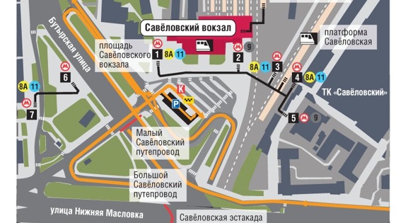 В ходе коренной реконструкции площади Савеловского вокзала она превращена в современный пересадочный узел, который открылся совсем недавно. Первое, на что обращаешь внимание, выйдя из метро, — это непривычное ощущение простора. Невольно сравниваешь с тем, что было прежде: «толчея» легковушек, растерянность людей, которым приходилось садиться в автобус прямо на проезжей части, поскольку он не мог подъехать к бордюру. Теперь все иначе: для автобусов сделаны пять параллельных полос. Въезд на них закрыт не только для обычных машин, но и для такси. У каждой полосы — своя остановка с номером после буквы А. Маршруты распределены по остановкам с умом и сгруппированы по направлениям: № А1 — по Сущевке, № А2 — через Нижнюю Масловку, № А3 — по Башиловке, № А4 — через Хуторские улицы, № А5 — по Бутырской улице от центра. На первый взгляд тут даже чересчур просторно. Вечером в будний день я не увидел больше одного автобуса в каждом из пяти рядов. Людей на остановках мало. Но нужно учесть: ТПУ «Савеловская» создан «на вырост». В прошлом году тут открылась станция «Савеловская» Большой кольцевой линии (БКЛ) метро. Пока построен лишь небольшой участок БКЛ, пассажиров на ней не много. Но их станет больше по мере дальнейшего строительства новой кольцевой. Кроме того, уже в этом году через Савеловский вокзал пройдет МЦД-1 Одинцово — Лобня, а еще через два-три года — другой диаметр: МЦД-4 Апрелевка — Железнодорожный. Так что нагрузка на узел продолжит расти. Сразу за автобусными полосами — линия такси. На ней несколько таксомоторов. По словам таксистов, пассажиры еще не привыкли, что искать такси нужно здесь, но со временем все должно наладиться. Благо схем и указателей на обновленной площади хватает, а ко всем местам посадки ведут яркие бело-желтые «зебры». Параллельно ряду такси — линия для провожающих и встречающих на личных авто. На табличке — такая же надпись, какую можно встретить в аналогичных местах в других странах: Kiss & Ride («Целуй и езжай»). Для тех, кому это непонятно, указано, что время парковки — не больше 5 минут. Если вы ждете того, чей поезд задерживается, нет проблем. За линией такси предусмотрена стоянка легковых машин. Она скоро должна стать платной, но даже сейчас, пока плату еще не требуют, вечером на ней много свободных мест. — Сделали все очень удобно, места много, — говорит Евгения Савинова с улицы Руставели, приехавшая на своей «Ауди», чтобы встретить друга. — Правда, заезжать на площадь теперь надо по-другому. Но это не проблема, если смотреть на знаки. Действительно, если вы едете из центра (со стороны Новослободской) или свернули с Сущевки, сразу повернуть направо на площадь сейчас нельзя: там висит «кирпич». Этим спуском теперь пользуются исключительно автобусы, что позволяет им попадать на площадь без задержек. Всем прочим надо проехать вперед, в сторону Бутырской улицы, около 280 метров и, повернув направо у дома № 4, вернуться к вокзалу. Благодаря этому пошли быстрее не только автобусы. На площади больше нет слияния нескольких потоков автомобилей, поэтому движение через нее заметно ускорилось. — Раньше у нас под окнами была вечная пробка. Сейчас стало полегче, — сообщил мне житель Бутырской улицы Сергей Михайлов. Кстати, дополнительной причиной задержек потока у домов 2–4 на Бутырской была остановка автобусов маршрутов № 87 и № 