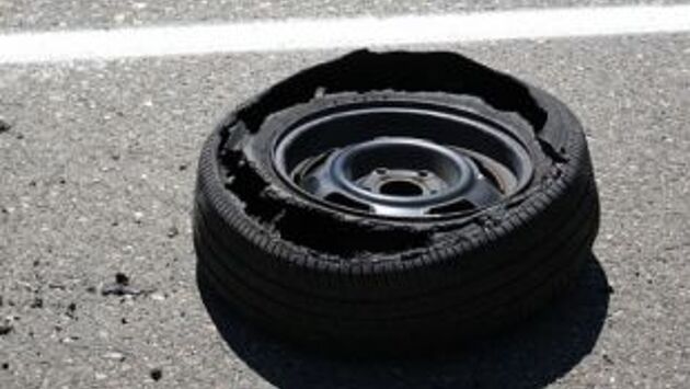 Водители встали на Суринском путепроводе из-за пробитых колес