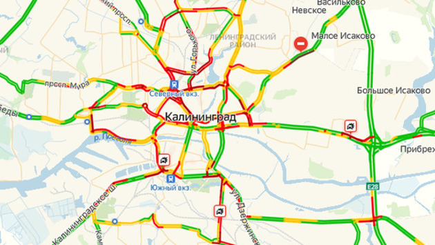 Час пик и три ДТП: Калининград вновь встал в девятибалльных пробках