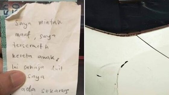 В Малайзии водитель оцарапал бампер чужой машины, припаркованной в центре города. Он прикрепил к автомобилю записку с извинениями и немного денег на ремонт. Владелец пострадавшего автомобиля обнаружил послание и опубликовал его в социальных сетях. Мужчина поблагодарил неизвестного за честность и заявил, что не держит на него зла. «Пусть нам всем повезет встретить таких честных водителей на дороге», – пожелал он своим подписчикам.