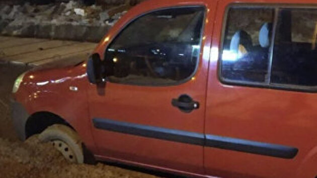Во Львове водитель автомобиля пытался проскочить дорогу залитую свежим бетоном