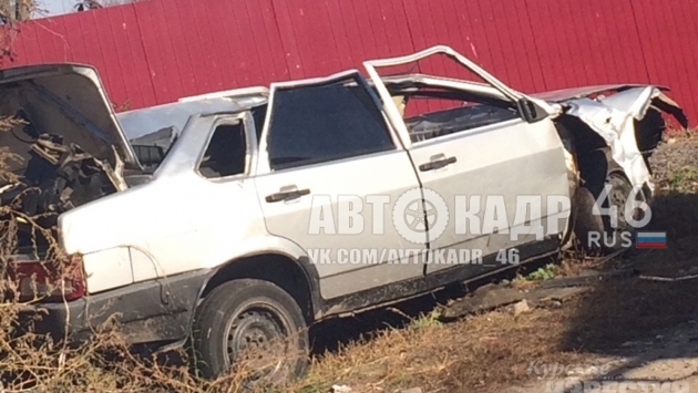 В Курске водитель ВАЗ-21099 врезался в опору ЛЭП