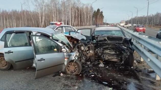 Лобовое столкновение двух иномарок произошло на первом километре трассы Томск – аэропорт рано утром. Водитель Hyundai Solaris скончался на месте происшествия, двух пассажиров и водителя второго автомобиля доставили в больницу. Полицейские выясняют все обстоятельства произошедшего, сообщает пресс-служба областного главка МВД. Ранее «ФедералПресс» писал о нескольких крупных авариях в Томске: 17 сентября в линию электропередачи въехала маршрутка, во время ДТП пострадали 12 человек. Чуть раньше два подростка получили травмы во время аварии на Комосомольском проспекте столицы региона, еще трое – во время столкновения на дороге в Колпашево. Одна из самых драматичных аварий в Сибири произошла на прошлой неделе: во время ДТП погиб мэр Абакана Николай Булакин. Фото: пресс-служба ГУ МВД по Томской области.