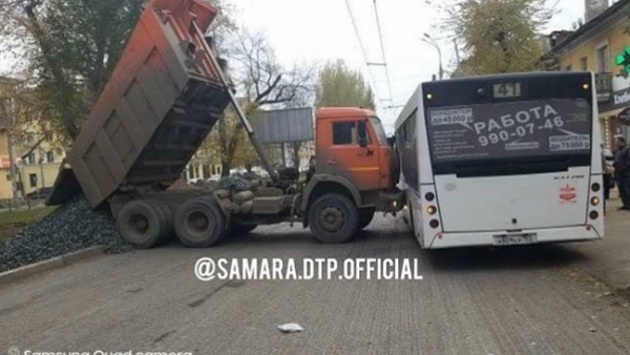 ДТП спровоцировало сильный затор на дороге. Вчера, 21 октября, в Самаре произошла авария между грузовиком и автобусом. При этом КамАЗ, груженый щебнем, и 41-й маршрут полностью перекрыли проезд по улице Победы. В происшествии никто не пострадал, однако стали известны подробности случившегося. Водитель грузовика не проконтролировал ситуацию на дороге. Он совершил маневр перед двигающимся автобусом, сообщили представители "СамараАвтоГаз". Разобраться во всех деталях аварии предстоит правоохранителям. Фото:ДТП Самара