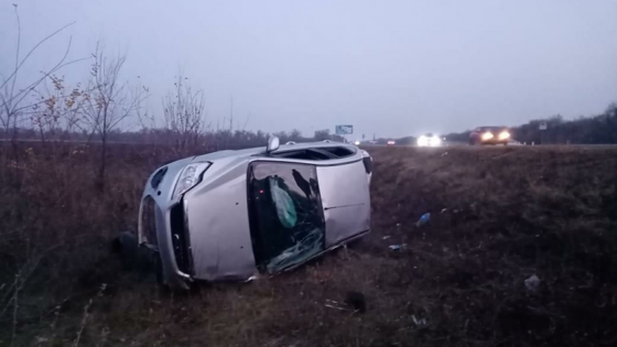 На международной трассе под Энгельсом иномарка опрокинулась в кювет