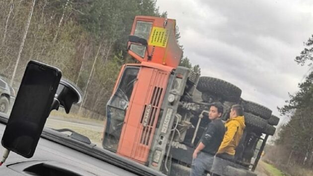 Под Екатеринбургом перевернулся груженый песком КамАЗ