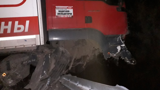Ночью под Энгельсом фура протаранила ограждение и повисла на краю моста