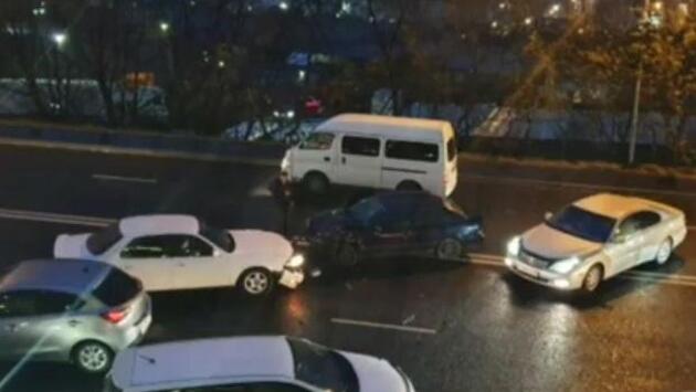 Ливень, начавшийся накануне вечером во Владивостоке, создал благодатную почву для ДТП, сообщает PRIMPRESS. Как известно, на мокрой дороге попасть в автоаварию куда проще. Так, в районе площади Баляева две иномарки не поделили полосу. В результате столкновения обе получили различные механические повреждения. На Тухачевского, 44 виноватой оказалась не только погода. На мокрой дороге пьяная девушка на автомобиле марки Toyota Vista не справилась с управлением и «покалечила» припаркованные машины. Не менее драматичная история случилась на улице Вилкова. Водитель микроавтобуса не заметил, как притормозил автомобиль марки Hyundai Tucson, и совершил столкновение с движущимся впереди легковым автомобилем, который в свою очередь вылетел на полосу встречного движения и столкнулся с белым седаном. ДТП спровицировало пробку.