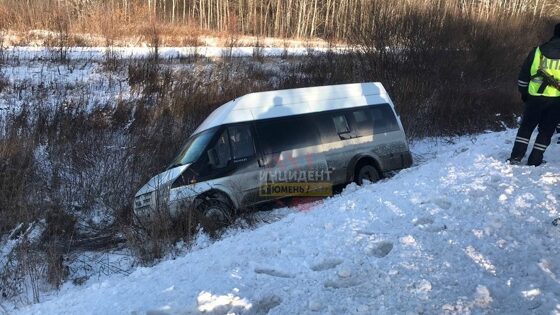 В Тюмени микроавтобус с пассажирами улетел в кювет