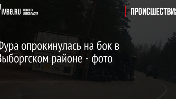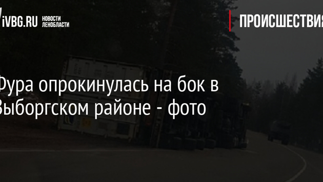 Фура опрокинулась на бок в Выборгском районе - фото