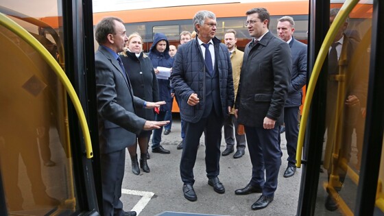 Глеб Никитин осмотрел новые автобусы для социальных маршрутов Нижнего НовгородаВ Нижний Новгород прибыли 56 автобусов для социальных маршрутов областного центра. 4 ноября 2019 года новые автобусы «Нижегородпассажиравтотранса» осмотрели губернатор Нижегородской области Глеб Никитин, мэр Нижнего Новгорода Владимир Панов и вице-президент по развитию продаж «Группы ГАЗ» Николай Одинцов. Низкопольные автобусы приспособлены для перевозки маломобильных граждан, также в них удобно заходить пенсионерам и мамам с колясками. На борту автобуса есть пиктограмма, информирующая о наличии аппарели для посадки пассажиров с ограниченными возможностями передвижения, оборудовано место для крепления инвалидной коляски и для перевозки собаки-поводыря. «Сегодня в День народного единства мы получаем новую партию автобусов. Все автобусы, которые приобретены, работают на газомоторном топливе. Это, во-первых, сокращение издержек, во-вторых, это экологичность. Будем и дальше закупать технику с такими характеристиками», — сказал Глеб Никитин. Ходовая часть и узловые агрегаты новых автобусов приспособлены к затяжным подъемам — как известно, перепад высот между заречной и нагорной частью Нижнего Новгорода составляет более 100 метров. Кроме того, в каждом из этих автобусов в районе дверей установлена система кондиционирования, позволяющая в любое время года поддерживать комфортную температуру в салоне. Рядом с каждой дверью установлены стационарные валидаторы для оплаты проезда. Подъехав к остановке и открыв дверь, такой автобус наклонится, чтобы облегчить выход и вход для пассажиров. «Это не последняя закупка новых автобусов в Нижний Новгород в рамках Федеральной программы субсидирования закупки техники, работающей на газомоторном топливе. То есть приобретаются такие автобусы со скидкой. Плюс к этому финансирование предоставляется и со стороны регионального бюджета», — сказал Глеб Никитин. «Отмечу, что в этом году обновление подвижного состава проводилось не только в областном центре. Так, для Арзамаса приобретены 17 автобусов, работающих на метане. 11 — это пазовские „Векторы“ и 6 низкопольных ЛиАЗов. На маршруты Дзержинска уже вышли 39 новых „Векторов“, буквально в эти дни ожидается прибытие еще 13 ЛиАЗов. Мы обязательно будем продолжать эту работу как в Нижнем Новгороде, так и в районах области, пользоваться возможностями всех федеральных программ», — сказал губернатор. Автобусы будут работать на самых востребованных маршрутах, чтобы сократить для пассажиров время ожидания на остановке. Мэр города Владимир Панов сообщил, что вопросы, касающиеся общественного транспорта, нижегородцы задают чаще всего. «В сентябре „Нижегородпассажиравтотрансу“ исполнилось 80 лет, и я хотел бы поблагодарить губернатора за спасение предприятия. В прошлом году НПАТ был близок к исчезновению. Мы прошли длинный путь: в 2018 году приобрели при поддержке главы региона 100 автобусов, сейчас получили 56 автобусов и до конца года ожидаем еще 144. Была проделана работа над замечаниями жителей города: добавили поручни и климат-контроль, который позволит сохранять комфортную температуру. Сейчас главная задача — снять все вопросы по городским маршрутам», — заявил глава города. «По статистике, Нижегородская область — один из субъектов, который самыми серьезными т