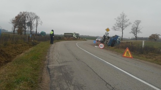В Гусевском районе фура выехала на встречку и опрокинулась в кювет
