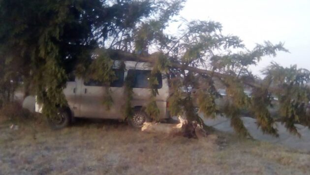 Минивэн свалил елку
